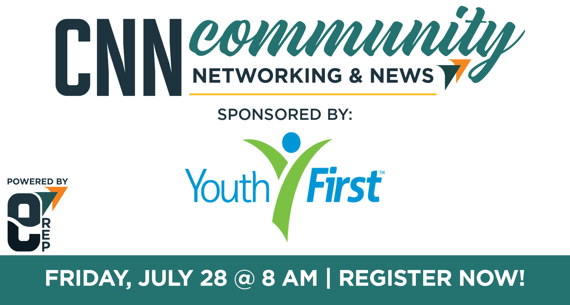 This week's CNN sponsor: Youth First. Join us for three rounds of networking, and don’t forget those business cards! Friday 8am-9:30am. Bring a door prize for a chance to win a full page ad in our newsletter!