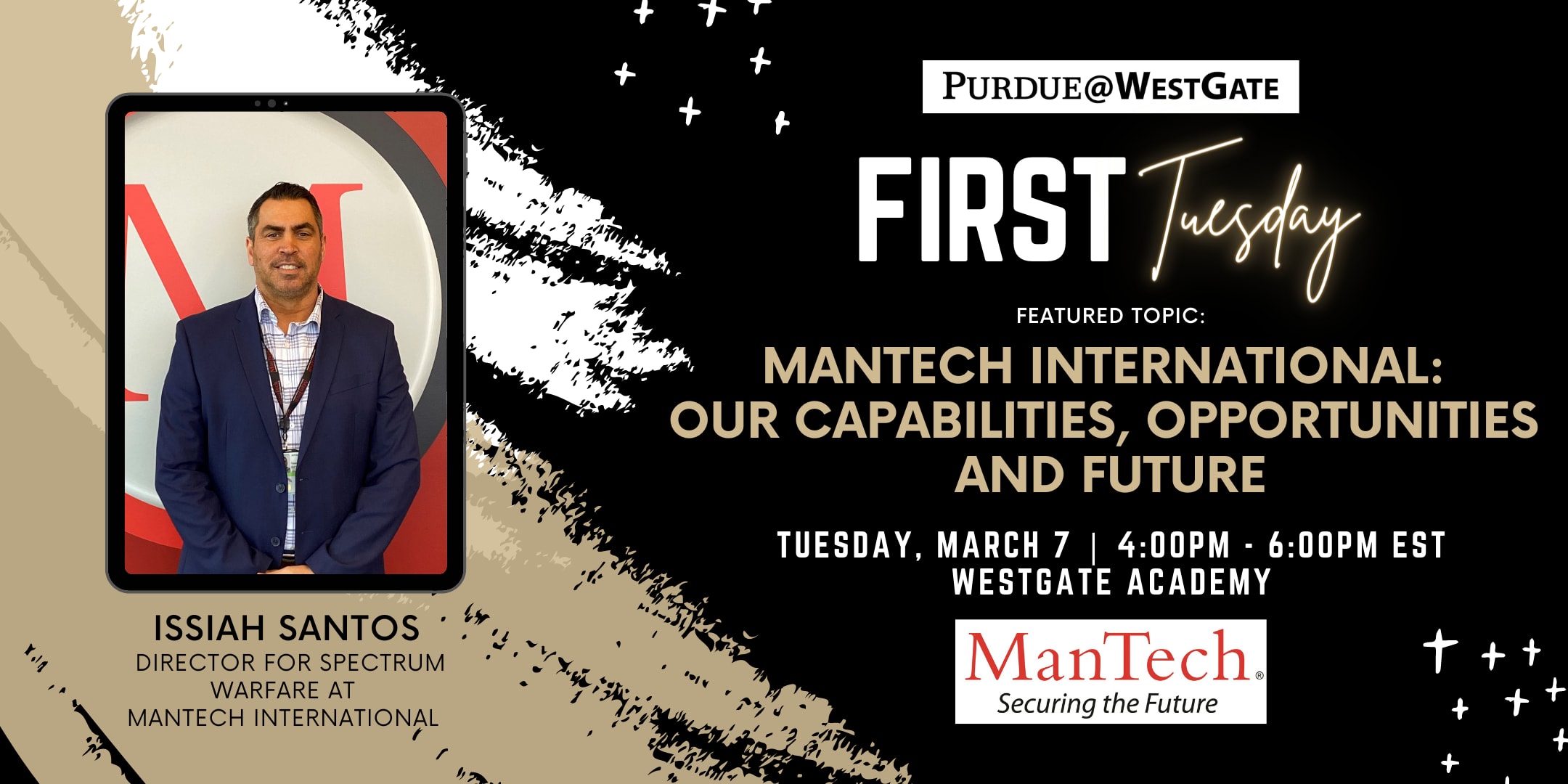 Speaker Bio: Issiah Santos is the Director for Spectrum Warfare for ManTech at NSWC Crane. He brings 14 years of experience supporting NSWC Crane and is responsible for the management and execution of ManTech’s NSWC Crane Spectrum portfolio. Issiah brings experience as a Director and Program Manager supporting program growth, strategic goals, as well as community collaboration.