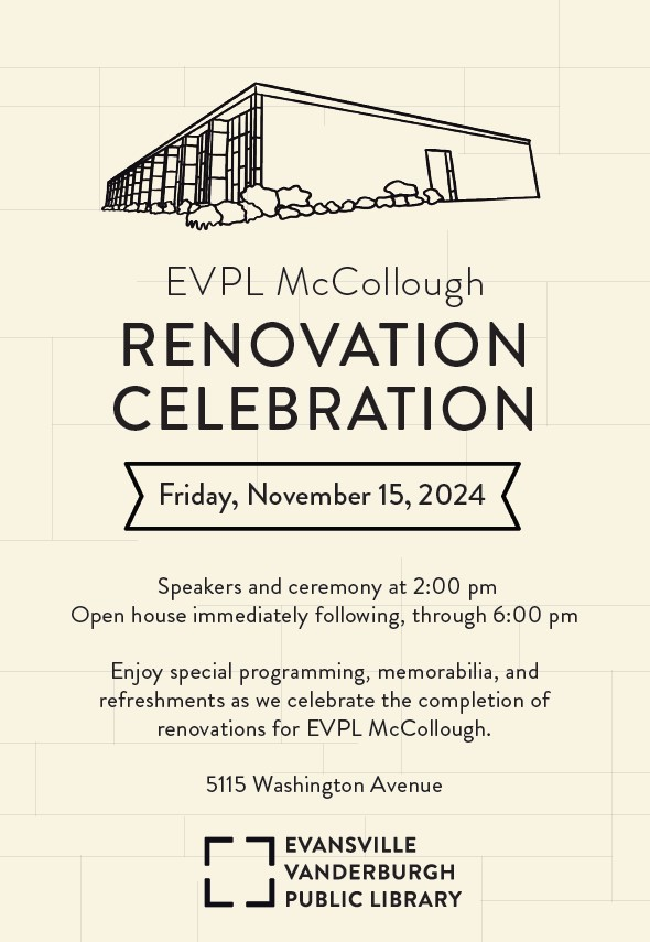 Join us in celebrating the grand re-opening of Evansville Vanderburgh Public Library's McCollough branch after completion of extensive renovations!