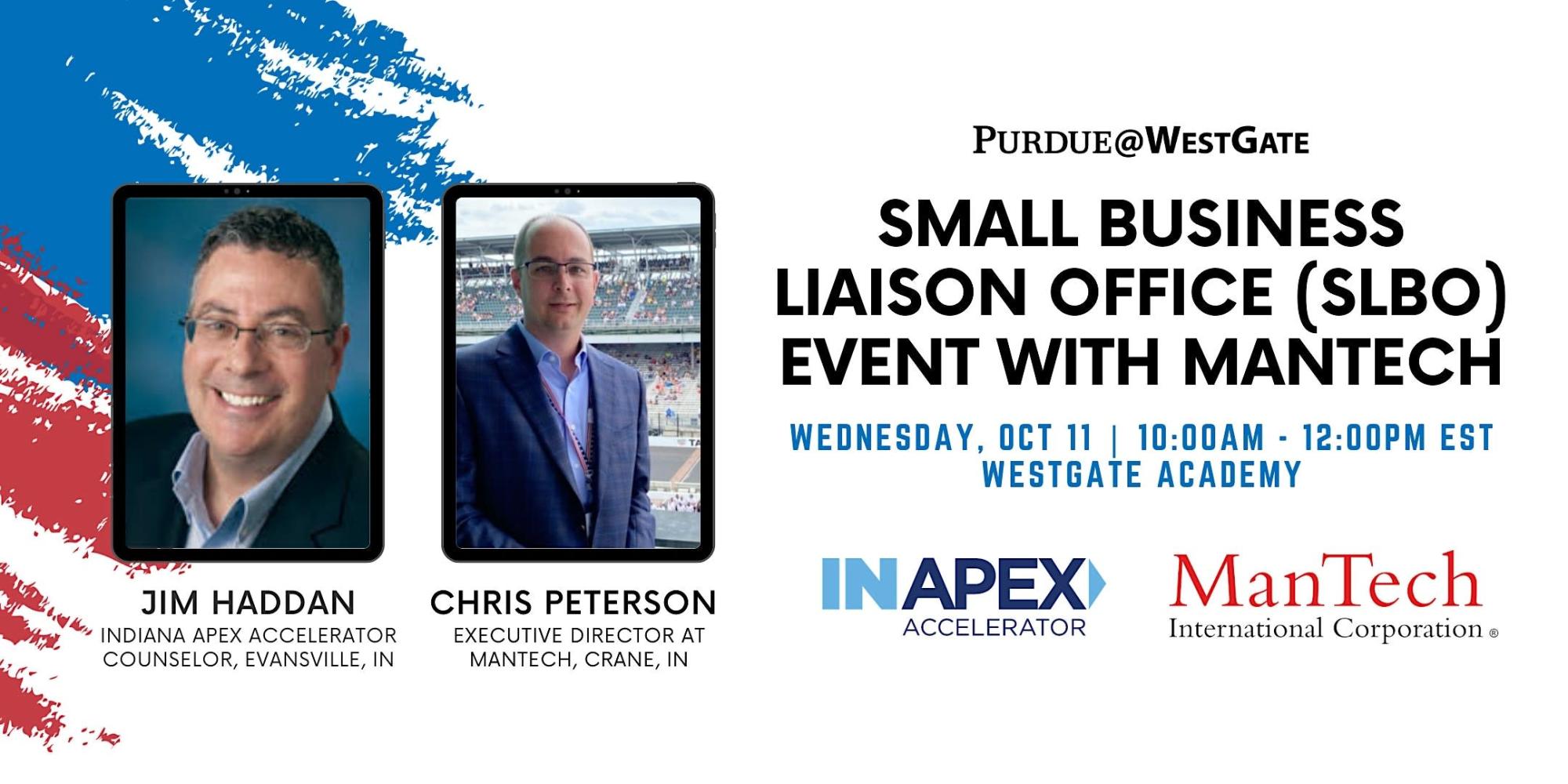 The Indiana APEX Accelerator program in collaboration with Mantech and the Purdue University Westgate Facility will be holding a Small Business Liaison Office (SBLO) event at Westgate from 10:00 AM - 12:00 Noon EDT. This event promotes subcontracting opportunities for SDBs, HUBZone businesses, SDVOSB, WOSBs, and other underrepresented small businesses with the large business SBLO. This event will be a live in-person event on aspects of the small business programs of the United Sates that help new part-time and fulltime SBLOs come up-to-speed on the details of federal small business programs, provide regulatory updates and clarifications for SBLOs and small business specialist and strengthen the network of APEX Accelerators, businesses, DoD and other federal agencies.